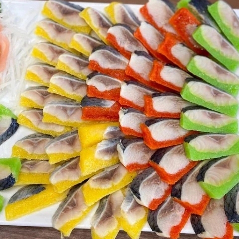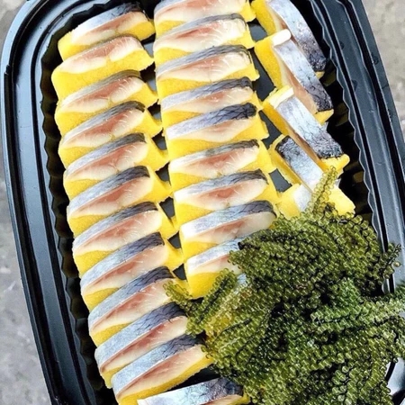 - Hàng chuẩn ngon , date xa - Hàng chuyên dùng cho các nhà hàng NHẬT 👉Cá trích ép trứng 1 thanh trong lượng từ 150g-170g - Thành phần : cá trích phi lê ngâm giấm, trứng cá chuồn - Bảo quản : ngăn đông - HDSD : rã đông, ăn trực tiếp, kèm gừng, chấm mù tạc & nước tương, tùy ý thích --------------------------------------------- 🐠CÁ TRÍCH ÉP TRỨNG - CHUẨN SASHIMI 🐠CÓ 3 vị Màu vàng Màu Xanh Màu Đỏ * Giao Ngẫu Nhiên 🛑Giòn giòn, chua ngọt, đảm bảo Ăn Là Ghiền luôn ạ. 🛑Mùi vị : Mùi thơm, béo ngậy của lớp cá trích hòa quyện cùng với vị ngọt, giòn tan của trứng cá chuồn tạo nên sự lạ miệng, thú vị của món ăn. 🛑Cá trích ép trứng gần như làm cho bất kỳ thực khách nào thưởng thức đều dễ dàng bị mê mẩn, thèm muốn. --------------------------------------------- - Hàng có sẵn, đặt hỏa tốc giao liền - Hàng luôn mới - Đảm bảo chất lượng chuẩn - Được kiểm tra hàng - Đổi mới khi hàng bị lỗi